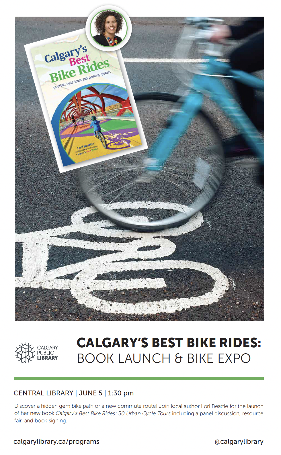 Lori will lead you on a visual tour of Calgary’s Best Bike Rides in her book launch presentation that kick starts her Calgary’s Best Bike Rides series that runs all summer in partnership with the Calgary Public Library. Come on down to the library and chat with bike experts from bike shops and bike organizations and stick around for the bike panel discussion on a range of topics from Ebikes to bike packing. From avid cyclists to newcomers, everyone is welcome to join our celebration of biking in Calgary. And there will be fantastic bike-themed door prizes given out throughout the event!
