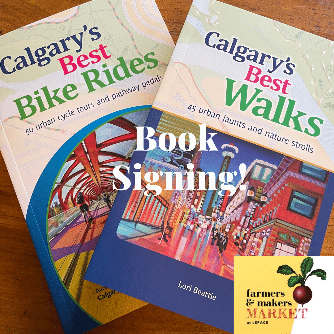 Swing by the Farmers & Makers Market at CSpace in Marda Loop to meet Lori and get your signed copy* of both of her books, Calgary’s Best Walks and her brand new book, Calgary’s Best Bike Rides! Buy a set of Lori’s books and save 10%!